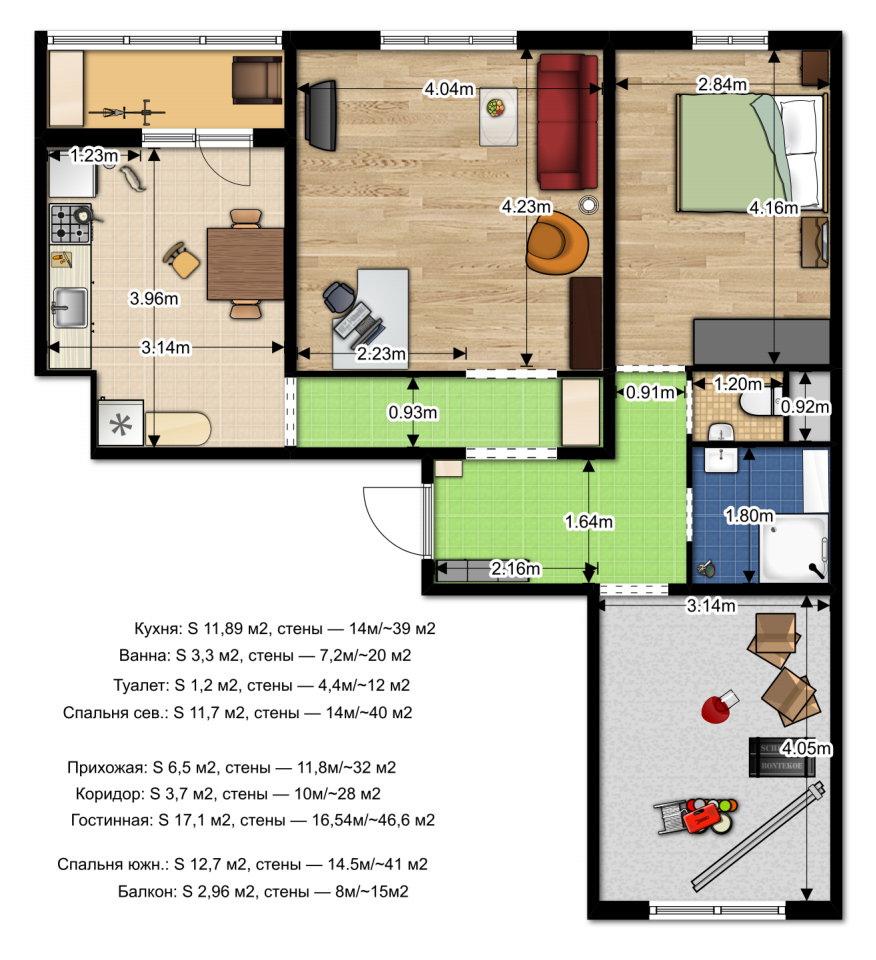 Оставлю тут свои схемы квартиры-трешки, сделанные на основе плана секции.