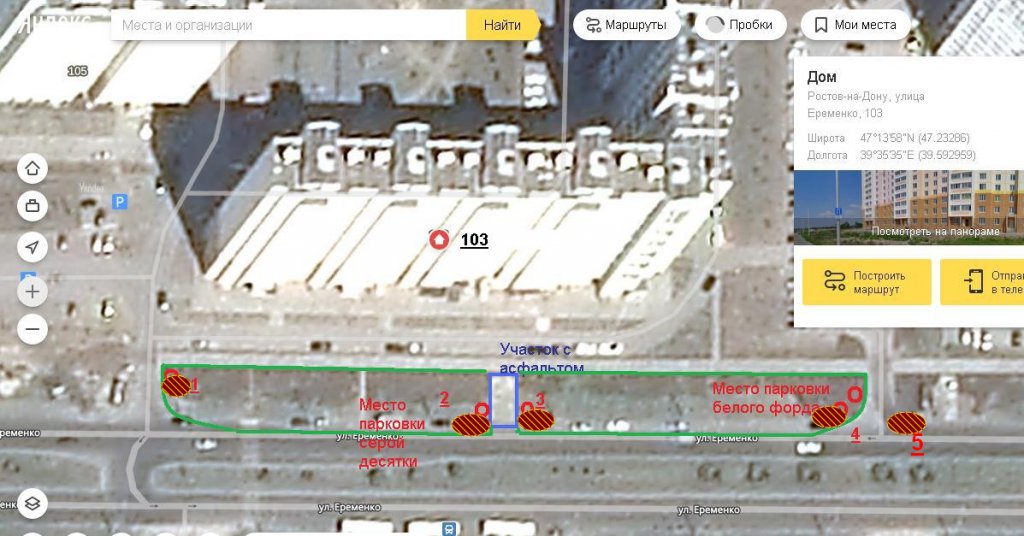 Здравствуйте! Ситуация с газоном напротив д.103 Еременко становится все напряженнее, наглядное действие Теории разбитых окон (ТРО) - где одному никто не запрещает тут же появляются другие желающие. Еще раз прошу рассмотреть возможность оградить границы газона несколькими полусферами, у вас они лежат возле башни 101/1