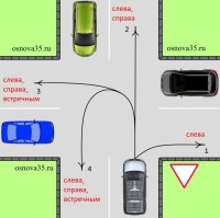 При повороте налево или развороте водитель безрельсового транспортного средства обязан уступить дорогу транспортным средствам, движущимся по равнозначной дороге со встречного направления прямо или направо. Этим же правилом должны руководствоваться между собой водители трамваев.